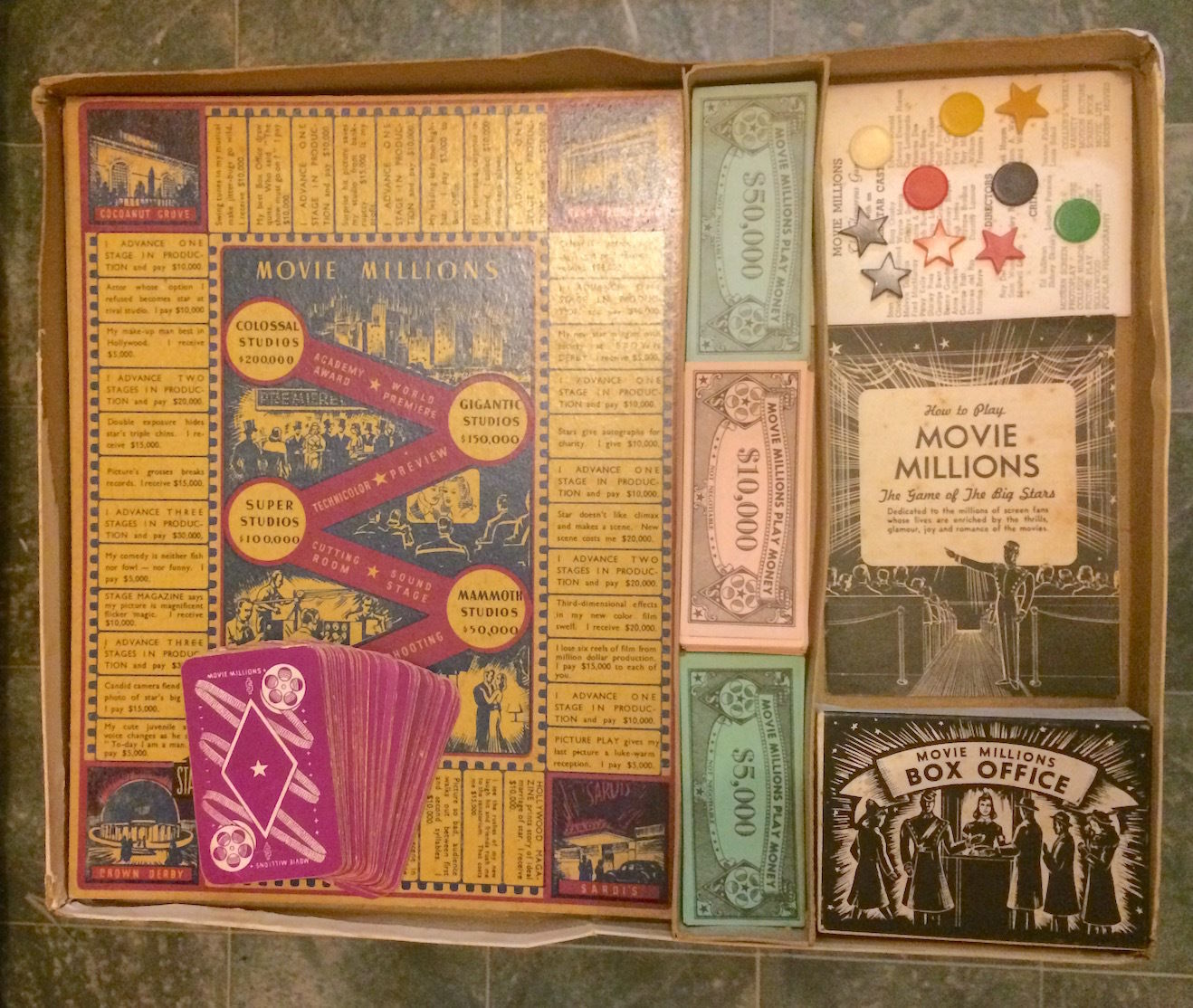 As board games grew in popularity, Hollywood wanted a part of the action releasing MOVIE MILLIONS, the Glamorous Board Game, a 1930’s studio tie-in.