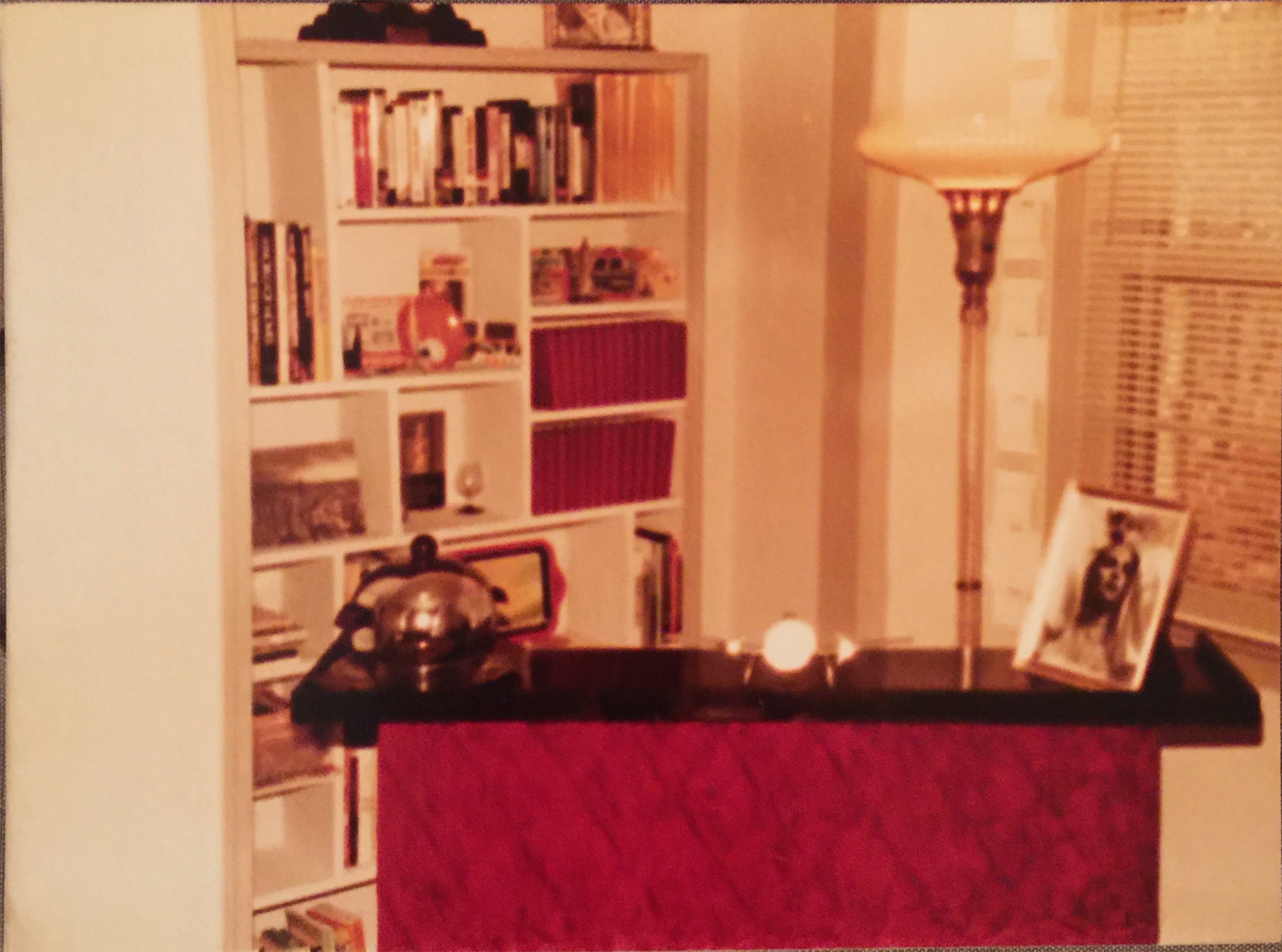 The above photos taken with Kodak 110 Pocket Instamatic do not justice to the actual color of the room. The walls were a dove gray, with a wall paper border of light gray and white in a a pseudo 1980’s Deco pattern and the window blinds in a very pale gray. I had yet to learn how colorful the Art Deco period was.