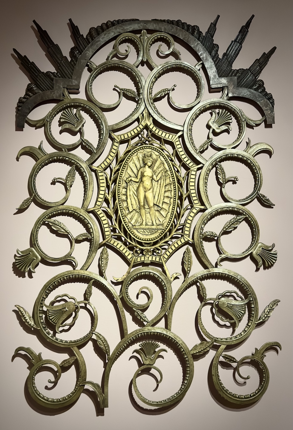 A rose by any other name would still be Art Deco, well at least in this case. Chris and I took a whirlwind drive from Rochester and back in one day to catch this wonderful exhibit before it closed. The Rose Iron Works of Cleveland, Ohio created some very iconic Art Deco pieces. Our first encounter with their work was back in 2017 at the Cleveland Museum of Art / Cooper Hewitt’s joint exhibit The Jazz Age. On display were three pieces, a mirror and console table and the Muse with Violin screen.