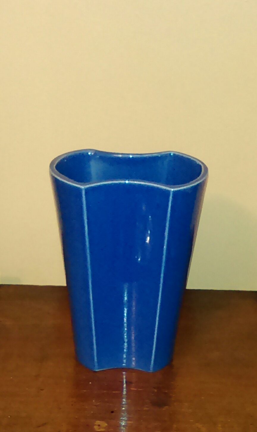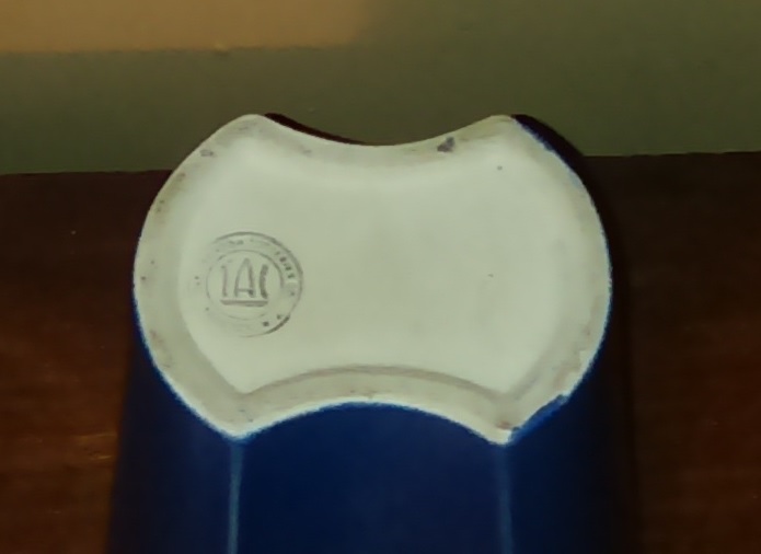 The vases are part of the modernistic line. The Crossley Vase featured in our earlier post, Weekend Finds – Spring 2019, is part of this same line. He informed us that although all Trenton Potteries (and most pottery in general) values have declined, this line retained a better value than most. The first vase, Rhythm,  glazed in Venetian Blue and the other, Orbit, in Gloss White appraised for a total value around $90.00. I paid $75.00 at the Golden Nugget Flea Market. He informed us that he had a small antique store, Lawrenceville Vintage Treasures, in Lawrenceville, NJ.  His autographed book on Trenton Potteries Co. is available for sale at his store.
