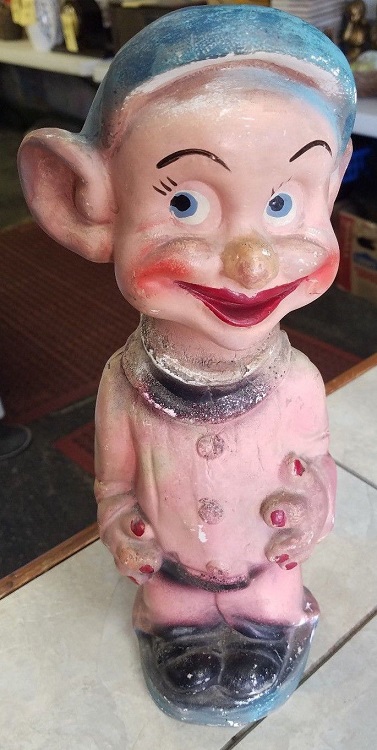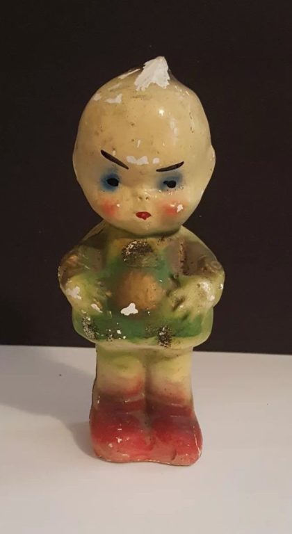 On the cusp of the art deco period, things took a turn for the worse, in my opinion. Because of the low-cost to produce chalkware, “Carnival chalk” became popular. This is what most of us are familiar with and refers to chalkware figures given as prizes at carnival games. Produced in mass quantities, finishing details vary resulting in a bizarre and sometimes questionable array of items.