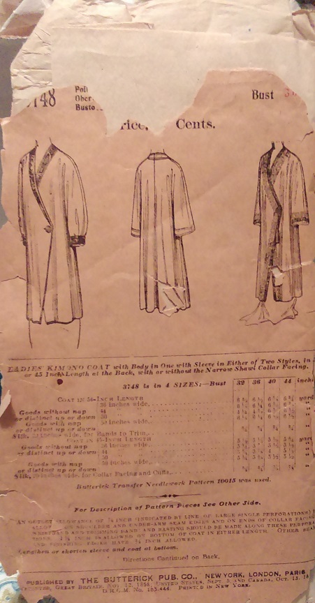 - Early tea dress pattern. note the sewing instructions on the front of the sleeve