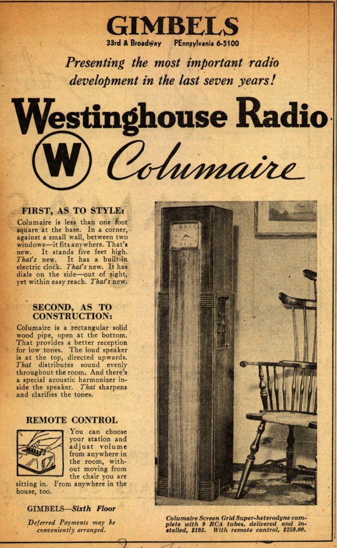 - 1931 Westinghouse Columaire clock radio – via Pintrest