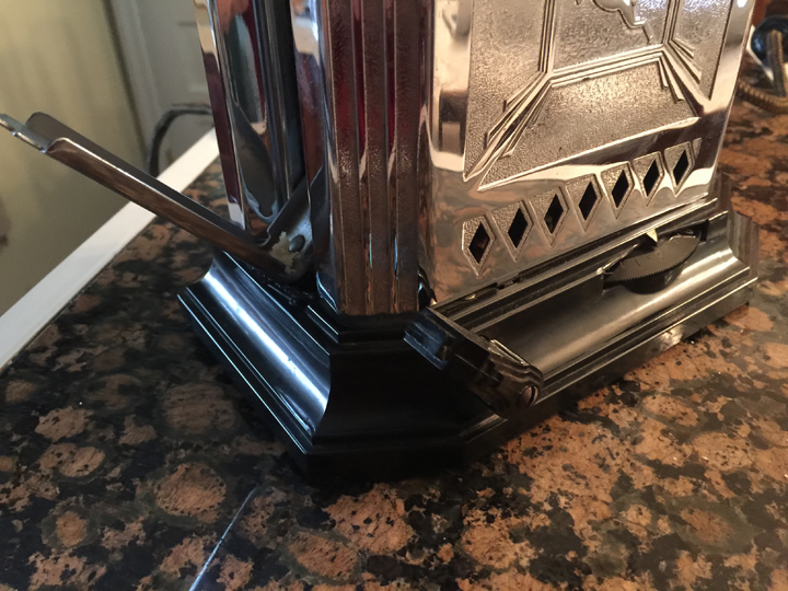 I’m sorry to be doing another post on a toaster just a few months after the one on my Toastmaster 1A1, but I didn’t think I would be adding to the collection what I considered the “Holy Grail” of vintage toasters so soon. When Chris was visiting his family in Florida earlier this month he stopped in at the Wildwood Antique Mall in Ocala and stumbled across a toaster. He took a chance and picked it, hoping that it was the one that I have been searching for.