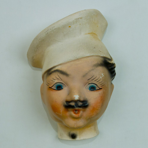 Although mid-century and not Art Deco, special mention goes to the most ubiquitous of all. Made in many forms, the chalkware chefs string holder is probably the most recognizable of all pieces.