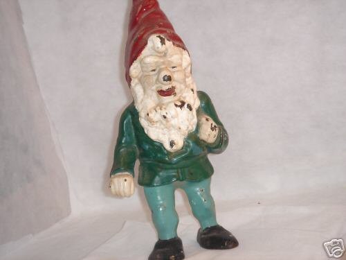 - Hubley Antique Cast Iron Gnome Door Stop.1920’s-1930’s