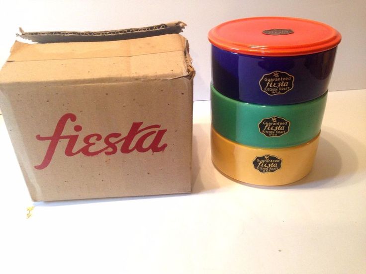 - The standard refrigerator set, bowls of yellow, green and cobalt with a red lid. Image from Pintrest.