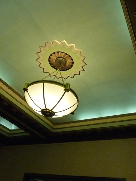 So much of Times Square’s history has either been torn down or is buried under a generic world of themed restaurants and stores that it is a pleasant relief that Hotel Edison remains. It’s lobby, is a place to sit and catch your breath in a wonderful Art Deco setting. In the early 1990’s the lobby was given an Art Deco face lift, while not a restoration of it’s 1931 appearance there are enough surviving original details that can make you feel that you have stepped back into the 1930’s. The six murals that line the lobby are sensitive 1990’s creations that evoke the of WPA murals of the late 1930’s.