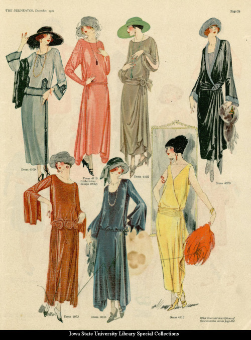 Most articles I’ve read for research tend to lump the progression of fashion of this time together as “the ’20’s style”.  I read an article (which I cannot locate) about an interview with Broadway costume designer, Martin Pakledinaz, for Thoroughly Modern Millie.  He admitted that the costumes were incorrect for the period (1922) but did not want to disappoint the audience expectations as the fashions of 1922 were not what was expected.  Can you imagine the “Modern Millie” above being “modern” in one of the styles below?
