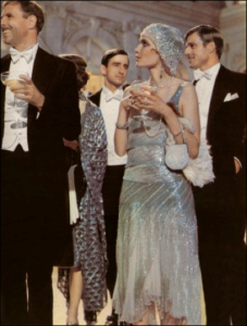 Both originally set in 1922, Thoroughly Modern Millie (1967 movie and the 2002 Broadway production) and The Great Gatsby (1949 directed by Elliot Nugent, and the arguably fascinating but bloated 2013 Baz Luhrmann version) have reinforced this false reality of fashions to the modern audience. The 1974 movie (newly set in 1926) directed by Jack Clayton is the more accurate in regard to the women’s wardrobe of the time – allowing hemlines to be a bit fashion forward. A reported exception may be the lost 1926 movie (also newly set in 1926) by Herbert Brenon noted to be the most faithful adaptation and period accurate movie. This would make sense as it was shot fairly contemporary to the time. I’ll use these as examples.