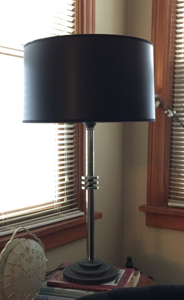 I liked the overall lines and figured it could be cleaned up and if necessary, painted – if the price was right. He was still not convinced. Fortunately, the owners had a 70% off all their merchandise. And the final sale price was $7.50. A quick clean and the “rust”, which was nicotine stains, wiped away to reveal a beautiful chrome lamp. After rewiring and a new shade, it proudly resides in Anthony’s TV room.