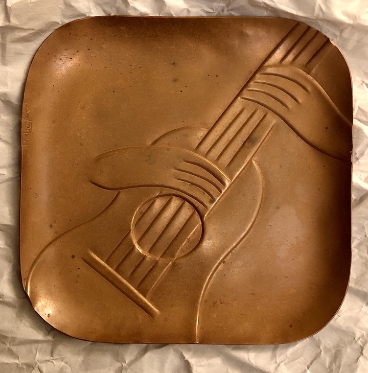 Rebajes small copper plate of stylized hands playing a guitar. From the collection of the author.