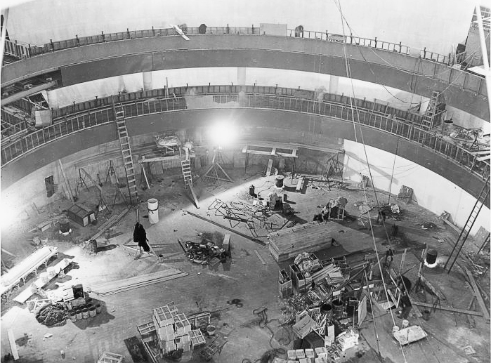 Scaffolding covering the "Theme Center", September, 1938.