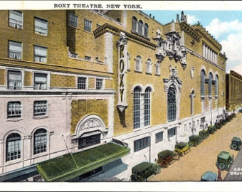 - Post card of the Roxy Theatre (1927-1960) 50th Street frontage. Image from ebay.