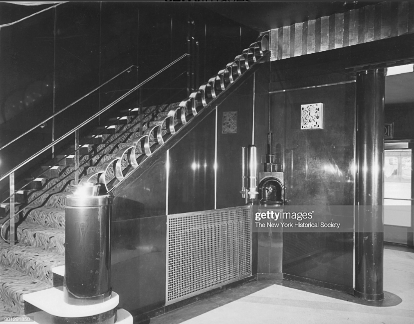 - Balcony floor exit to the mezzanine lounge. Image from Getty Images / New York Historical Society.