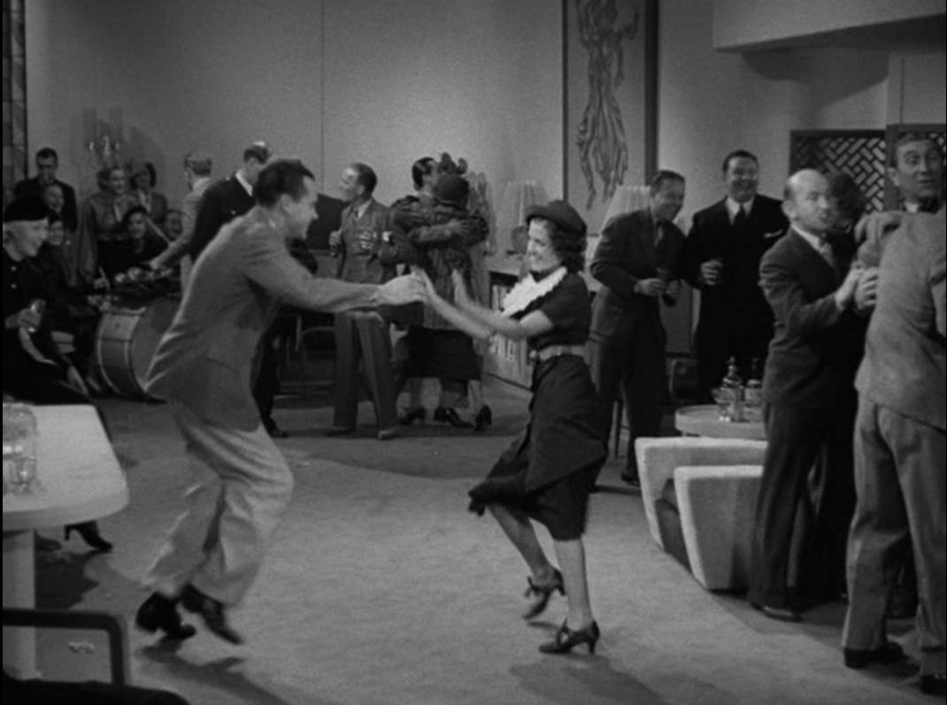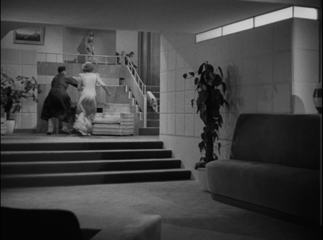 The Charles’s arrive home to an unwelcome welcome home party. To the right of the dancers is a Paul Frankl “Speed Chair” designed in 1932. Image from Warner Bros. DVD.