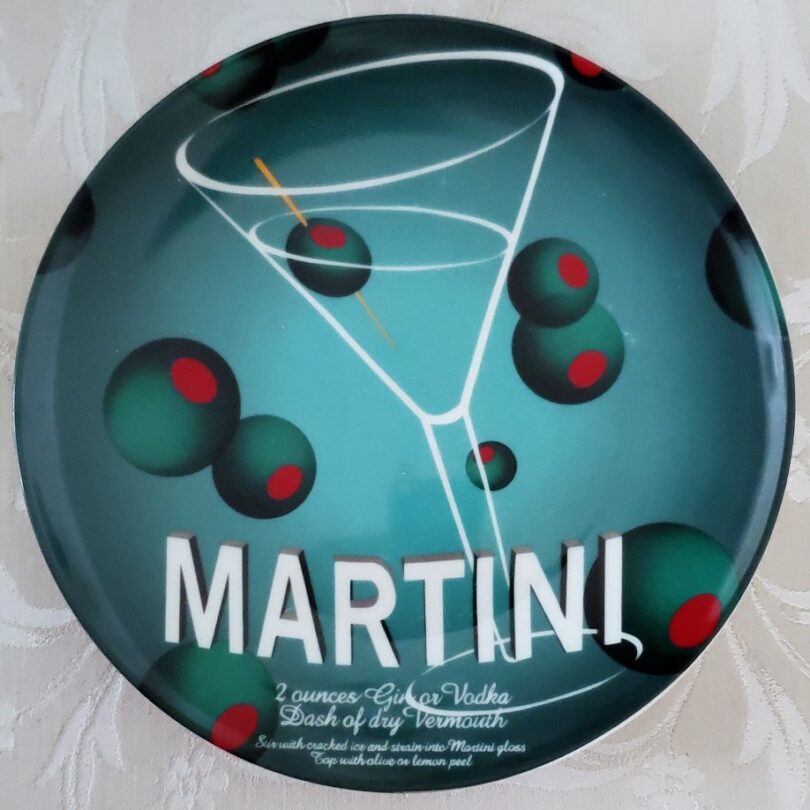 This set of 2003 drink plates by “The Marketplace” is an example of modern aesthetics with a deco influence.  I found these at 2ND Avenue Thrift Store. Are they a perfect fusion? Maybe not. But they are stylish. Not only decorative, they are informative as well.  Each plate has the recipe for the featured design. I passed on these originally but relented and went back the next day. I’m glad I did as they were 50% off!