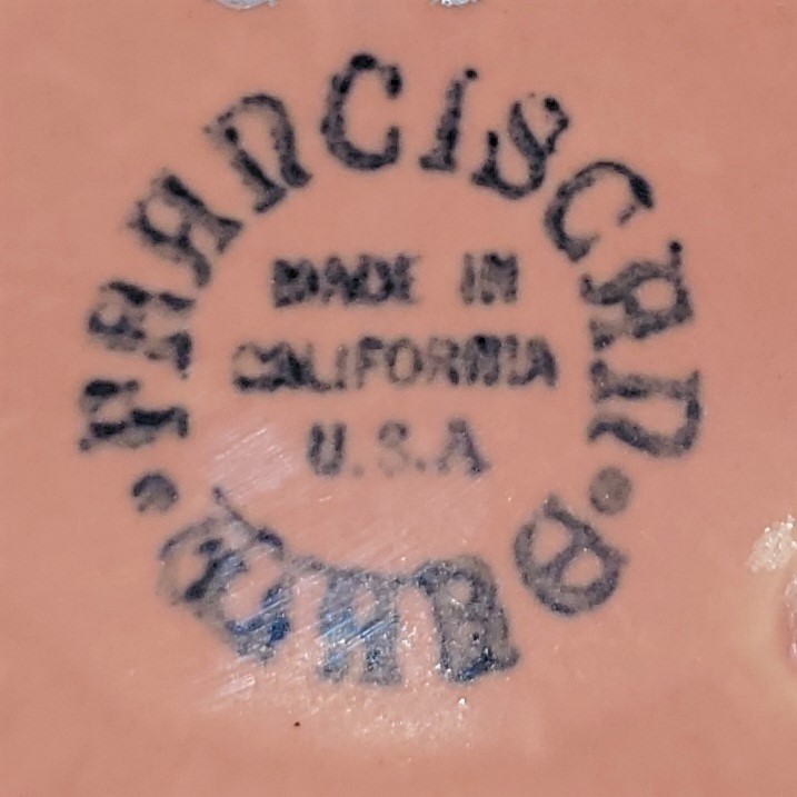 Everyday pieces are found fairly easily. However, service pieces are harder to find. The Gladding, McBean & Co. in Los Angeles, California produced this pattern between 1936 and 1954. The backstamp on used on these pieces show they were produced anytime from 1940 through 1947.