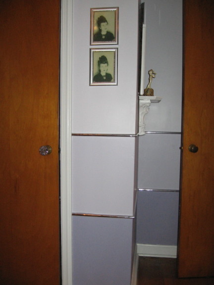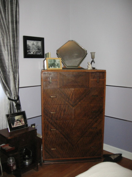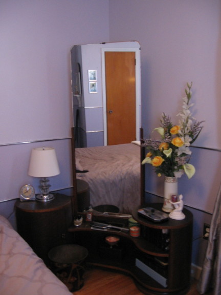 My chrome West Bend Penguin Hot and Cold Server on my “bar” in my first Art Deco room, 1983. The “bar” is long gone, but I still have the Penguin ice bucket.