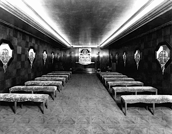 E. F. Caldwell & Co., the same company that made the lights for Detroit’s Fisher Building, were responsible for the many metal light fixtures in the Netherland Plaza.