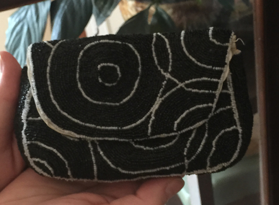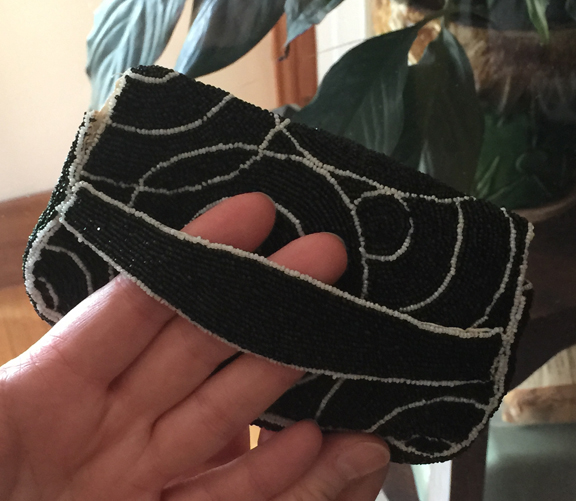 But nothing says deco more than a circular geometric design. This striking little black and white beaded clutch was a real find: