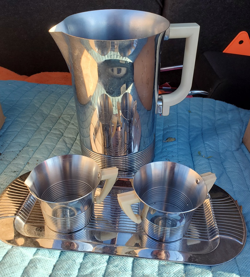 If the Coaster Set is not easy to find today, the Danube Coasters fall in the difficult to find category. Like the earlier coasters the Danube also had a production life of approximately five years. These, too, were available in polished chrome and copper, with the copper ones being much harder to find today. And to add a set of the Danube coasters to your collection expect to pay a premium price. Currently online one set of five (consisting of 4 chrome and 1 copper) is selling for $300.00, while another set of eight (all chrome) is $250.00.