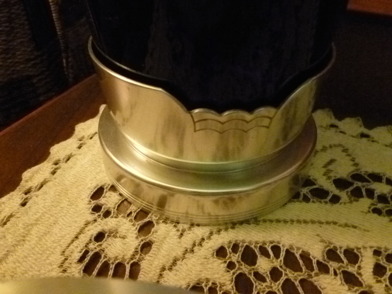 The Chase, Brass and Copper Company was in the business of making brass and copper pipes, nails and toilet bowl floats, Revere and Alcoa both were in the business of cookware (pots and pans). In the early 1930’s as the depression deepened to its lowest point, Chase decided to expand its sales base and go into the giftware business. Giftware that spanned the gamut from smoking items to cocktail shakers, electric buffet servers and lamps. Made of chrome and copper, their giftware line was such a success that Revere and Alcoa followed a few years later with their own lines. Revere, like Chase made their items of chrome, brass and copper. Alcoa, an aluminum company had developed a new, special type of aluminum for their giftwares; they christened the new line Kensington, after the town the company was in, New Kensington, Pennsylvania. Introduced in the fall of 1934 the Kensington line was modern with classic accents, usually in brass. All the items were created by industrial designer Lurelle Guild. Here is the Stratford comport and Thistle dish, both of which were among the first items when Kensington hit the market in October of 1934.