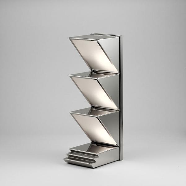 - Staircase leading from the first mezzanine to the second. Tokko wallcovering and Deskey designed lighting fixtures.