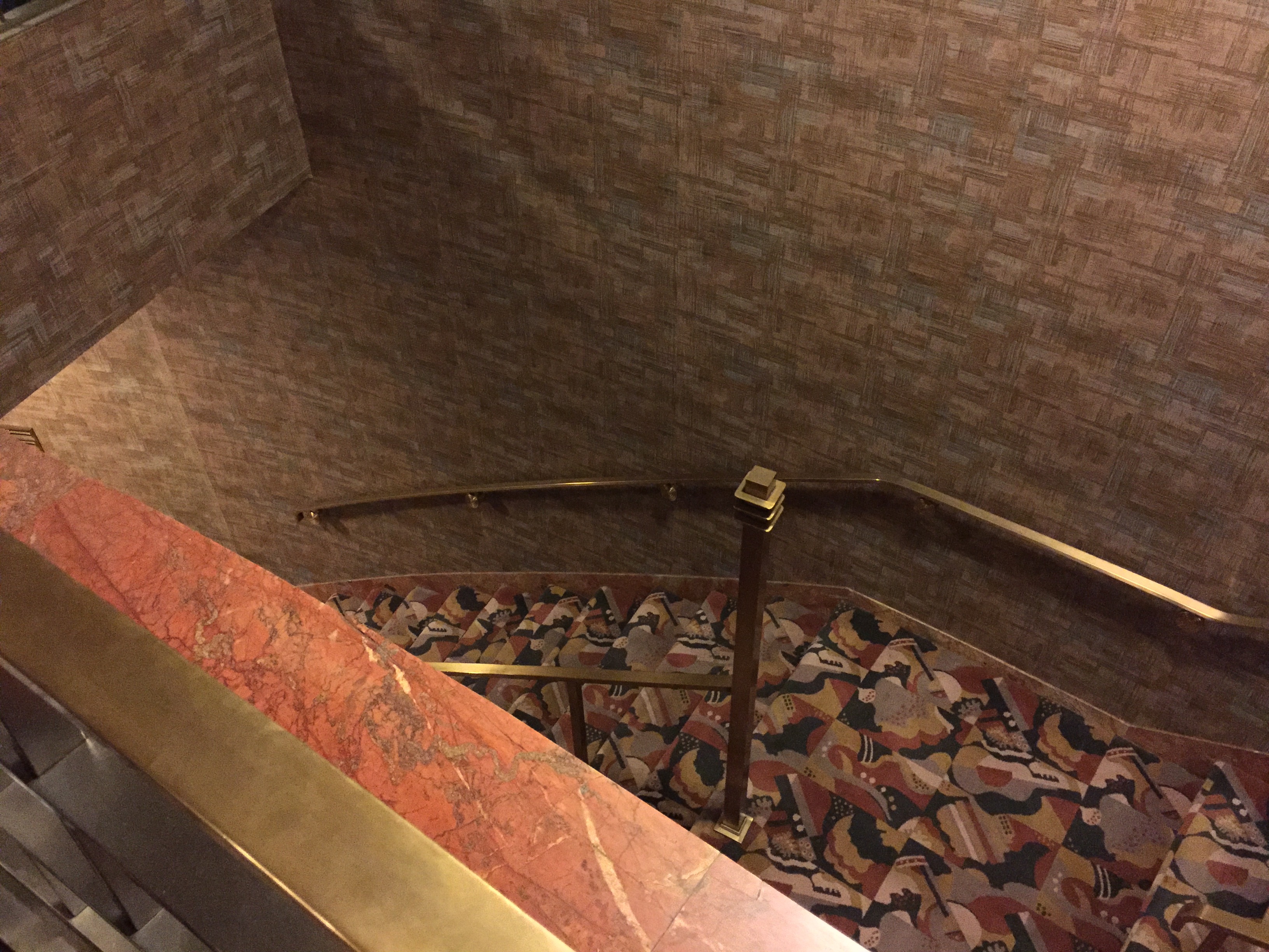 Radio City Music Hall carpets. The Grand Lounge, elevator lobby and the stairs leading down from the Grand Foyer..