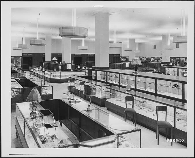 - Main floor of Bonwit Teller, 5th Avenue & 56th Street. Sigurd Fischer photograph, Museum of the City of New York.