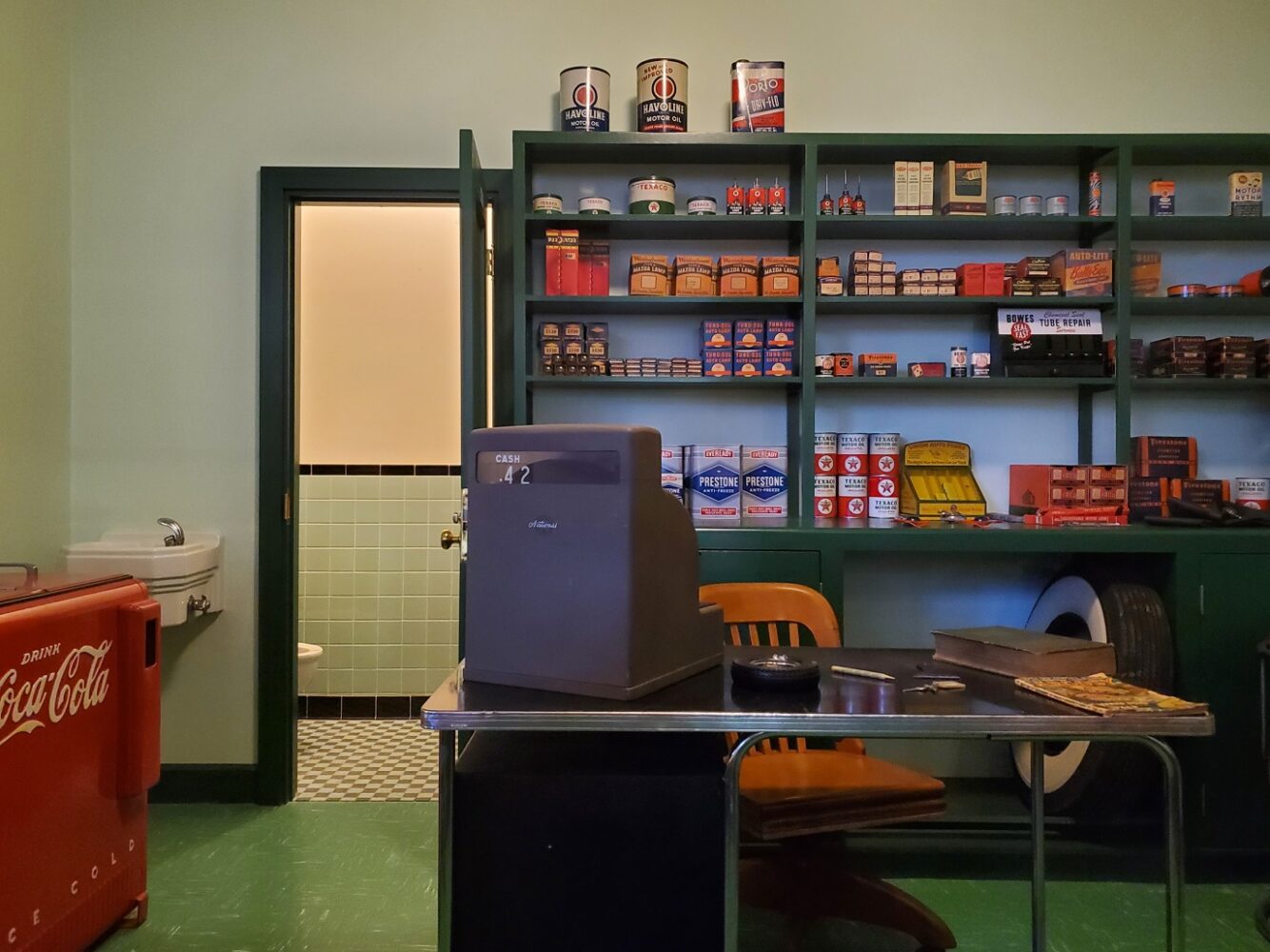 Of course all this freedom creates a need for gas, repairs, and “comfort” breaks. Therefore, service stations became a necessity.