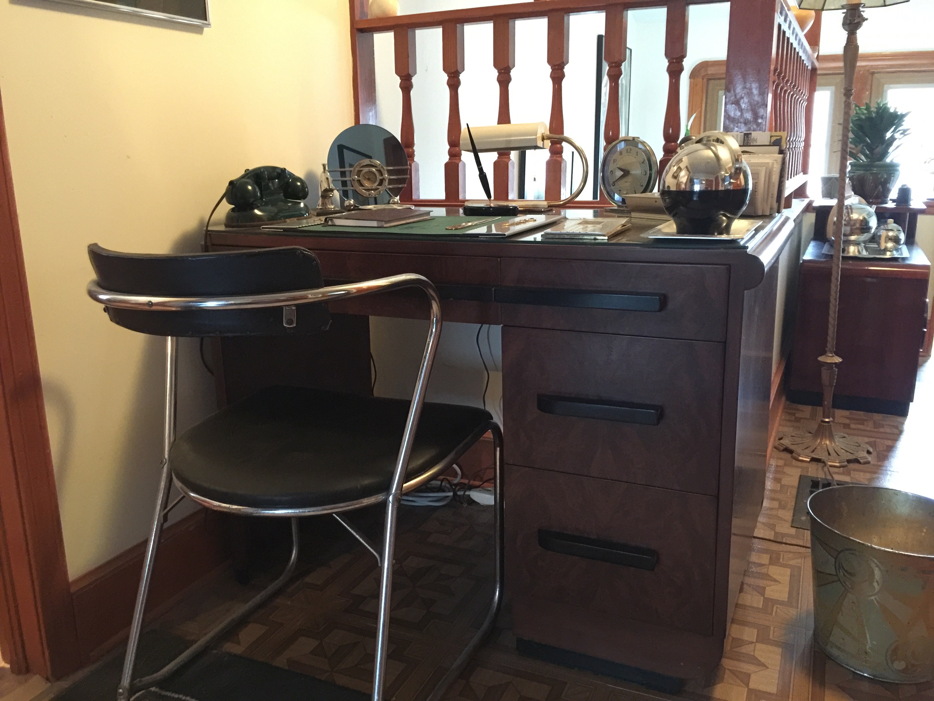 My most prized Deskey piece (if it is actually one) is my Widdicomb desk. These desks usually had a metal plate inside one of the draws, my does not. The desk I have might have been refinished or repaired over the years, which would also explain the missing brushed chrome back plates on the handles. If it is not an actual Deskey-Widdicomb desk, it is a great reproduction and it was cheap enough to not pass it up.