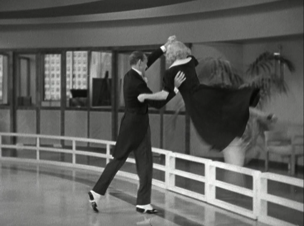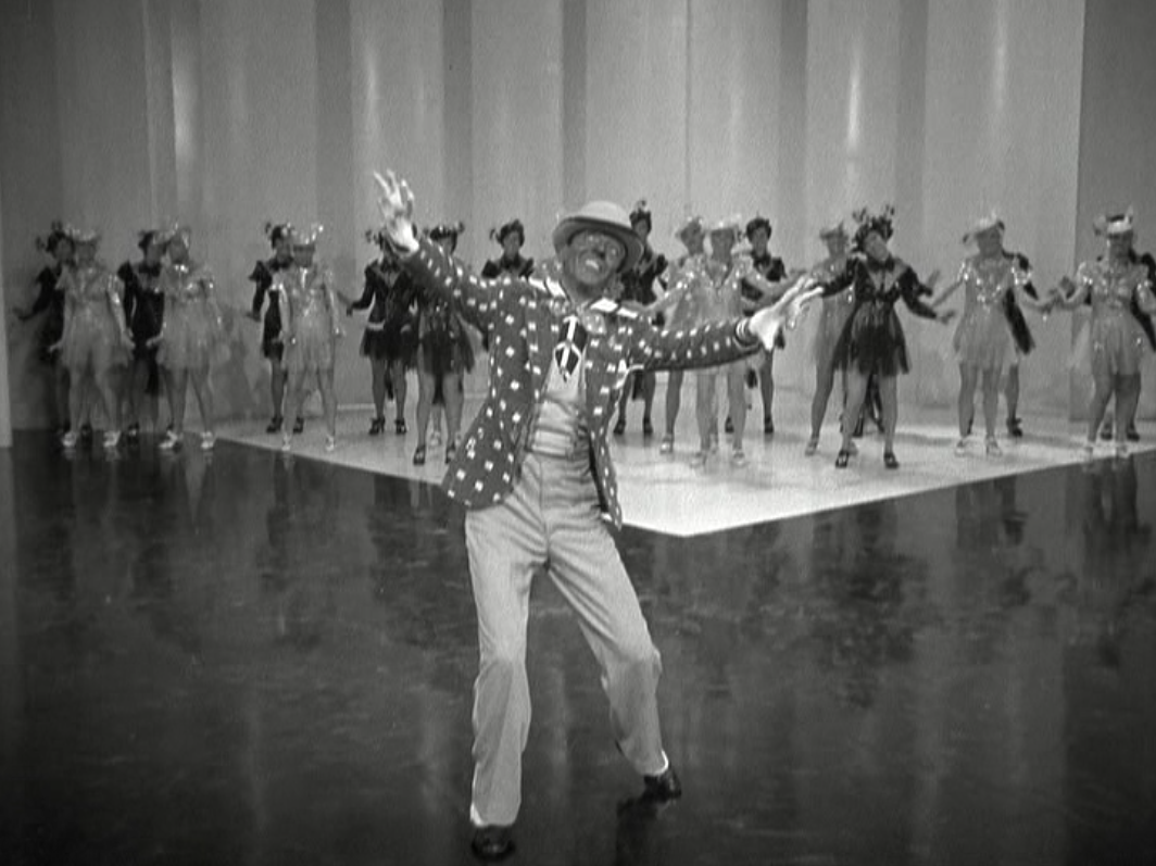 After the solo dance by Astaire and Rogers, the number continues. First the white dance chorus, followed by Etta Moten (1901 – 2004) singing “The Carioca” then the Afro-Brazlian dance chorus comes in, before going back to Astaire and Rogers doing a tap version on the stage which now revolves and ending with a couple of semi-overhead shots of the all the performers in the number.