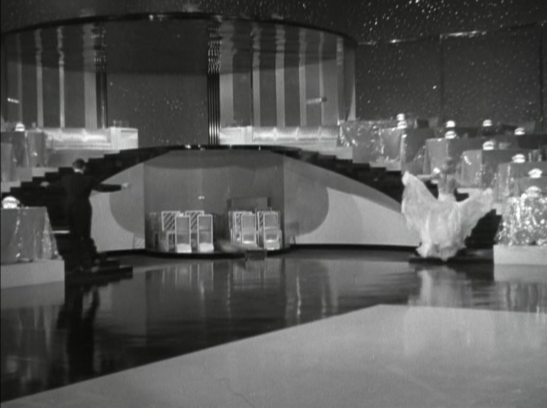 Now the action shifts to the Carioca Casino. Carioca is a word that refers to the citizens of Rio de Janeiro. This is the moment that made Flying Down to Rio a sensation: the first, on-screen dance of Fred Astaire and Ginger Rogers. It also introduces something that would dominate in the next three Astaire-Rogers films, “the Big White Set”. These enormous, mostly white sets would be the setting for the films big production numbers, which in this film is “The Carioca”.