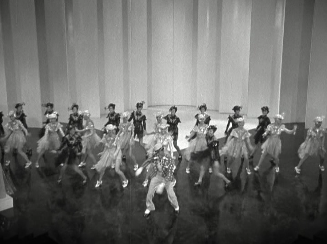 On screen credit for the second Silver Sandal set and the Bojangles of Harlem costumes went to John Harkrider. That credit is only somewhat true. Harkrider only “designed” the part of the set seen in the Bojangles of Harlem number. A number photographed on a different stage from the Silver Sandal set. Credit for the Silver Sandal sets goes to Polglase and Carroll.