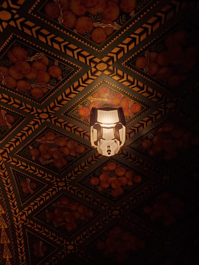 A striking, and recently renovated, hand-painted ceiling. Photo by the authors.