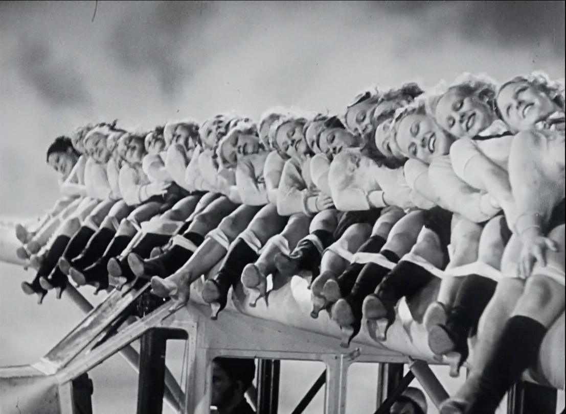 Chorus girls take to the sky to entertain the guests of the Hotel Atlantico. Frame grab from the Warner Bros. DVD.