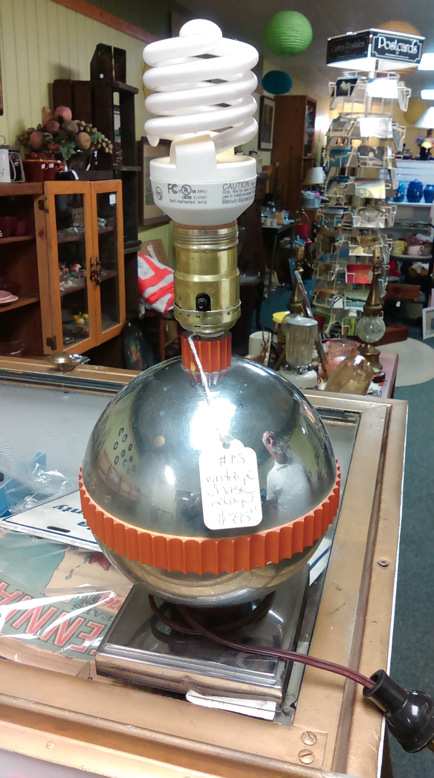 The Ole Cracker House Antique Mall, located close to my brother’s home, is always stop one. Filled with a variety of fairly priced items, I contemplated purchasing a Chase chrome and Bakelite lamp. With minimal damage to some of the Bakelite and after a lot of thought, I walked away from it.