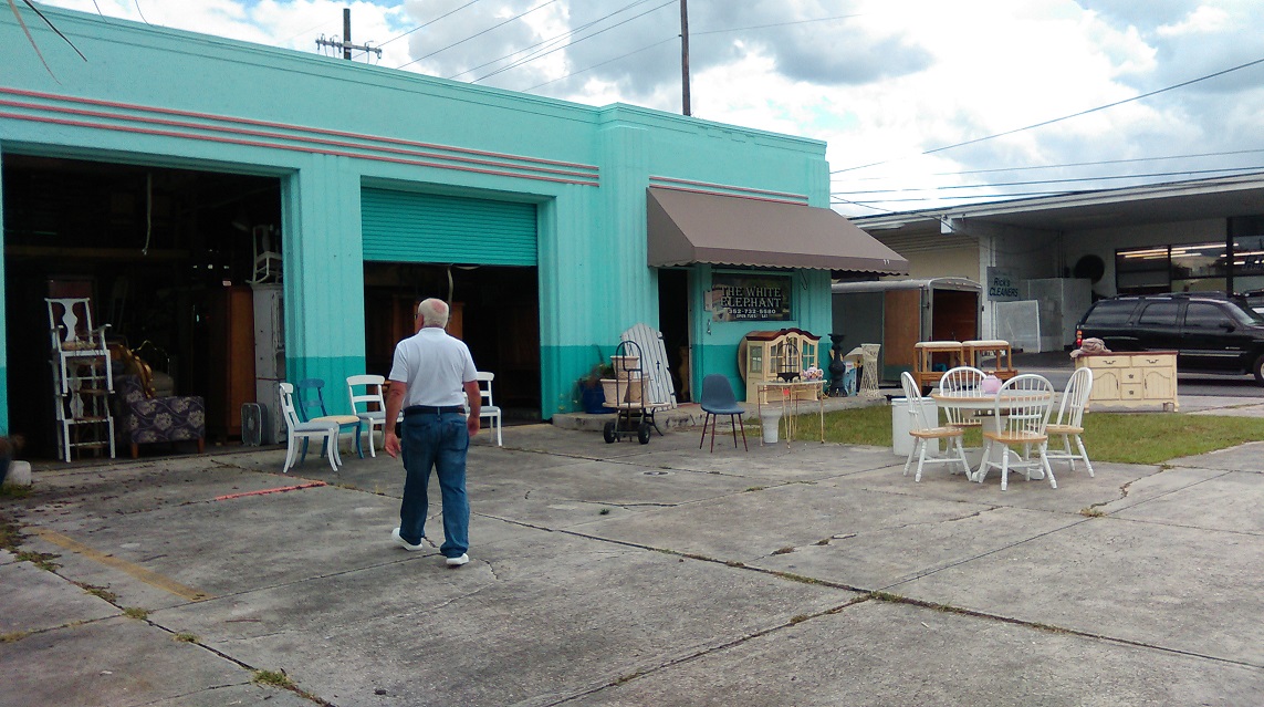 A short ride to downtown Ocala and we arrived at our next stop, and new one for me, The White Elephant, a small store, jam-packed with a variety of interesting and offbeat pieces of all eras. Be careful picking items up as it is easy to start an avalanche of breakables! Luckily, I didn’t break anything, although it was a close call at one point. Items are fairly priced and the owner is friendly and helpful. She directed my brother to her furniture warehouse across the street as he is looking for a storage piece for his house.