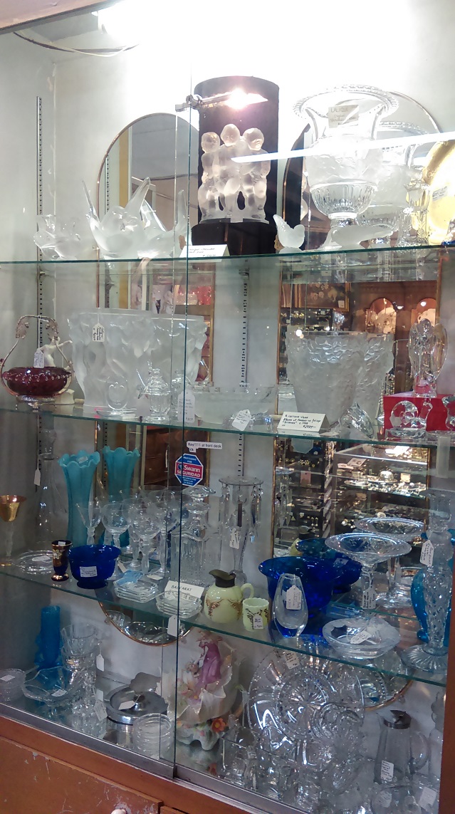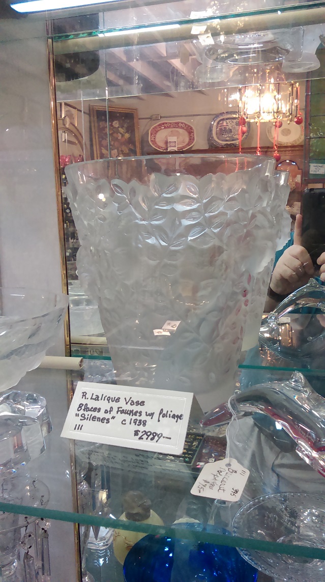 Stop two and we explored Traditions Antique Mall. Bigger than it looks, the prices are generally fair though a few items are a tad “pre-recession” in price. One dealer has a beautiful display of Lalique.