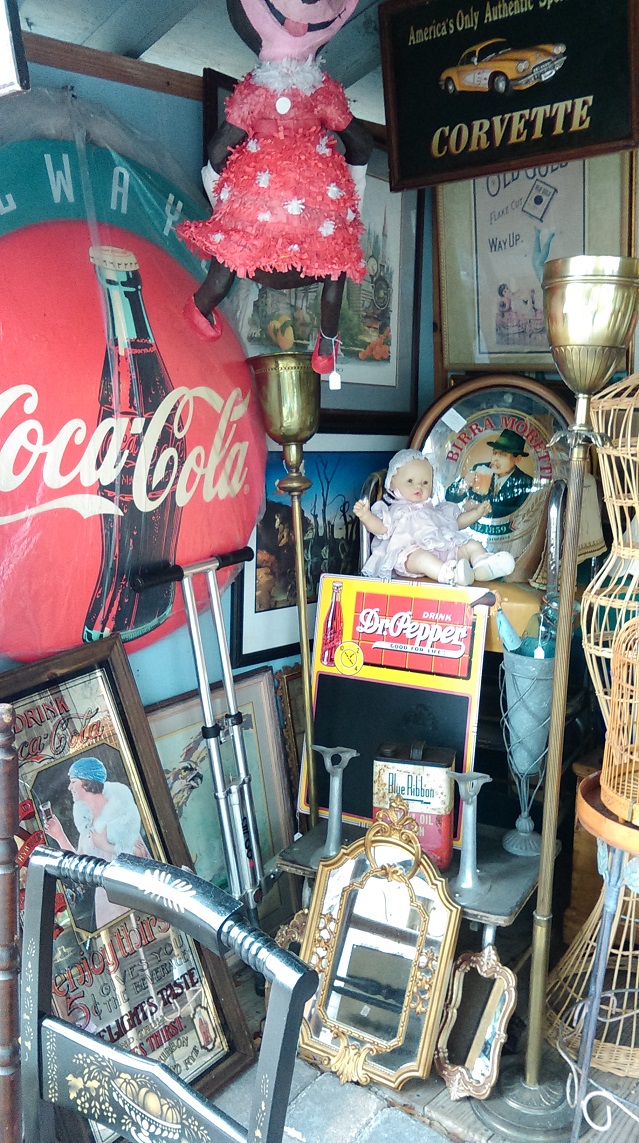 The main building is a warren of rooms and dead-end nooks and crannies. Almost everything is fairly priced. For less than what I have paid in the north, I picked up a couple of mint condition Riviera dishes. The building is animal friendly IF your pet is carried resulting in my brother and me taking turns sitting with Lady outside.