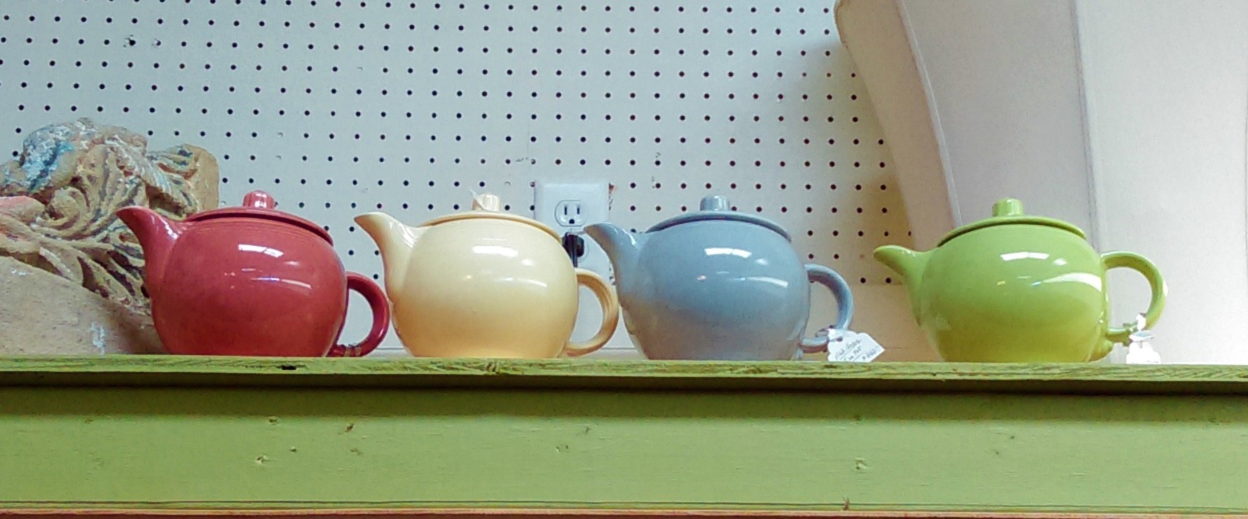 - Rose, ivory, grey and chartreuse Fiesta medium teapots