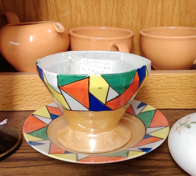 Back on the road, I saw a sign for Hickorycreek Antiques, in Ashland Va. Located in a strip mall, I almost went driving- for- deco right by it.