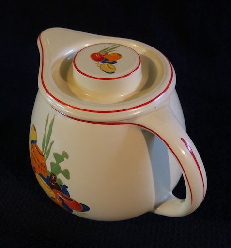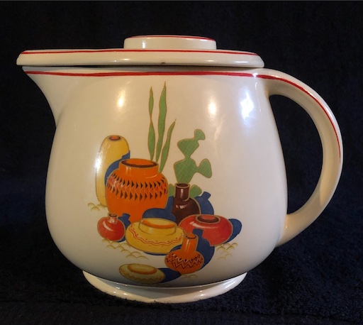 A very popular series of decals featured Mexican themes, with Mexicana being the most popular. The bright colors of the decal matched well with the colors of Homer Laughlin’s most popular dinnerware Fiesta.