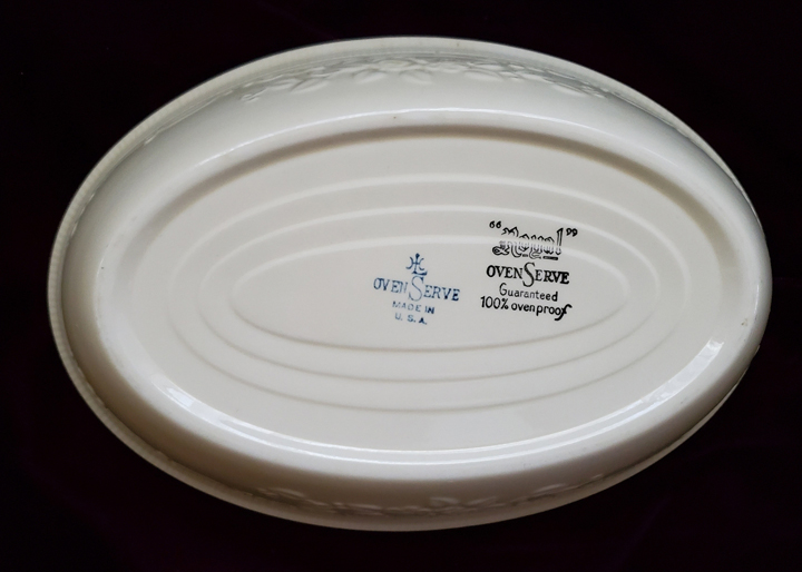 By the early 1930s, Homer Laughlin, had become one of the United States leading producers of china. Expanding their business they introduced OvenServe in 1933. And as the name implies these pieces were durable enough to withstand the heat of an oven and yet nice enough to be placed on the dinner table.