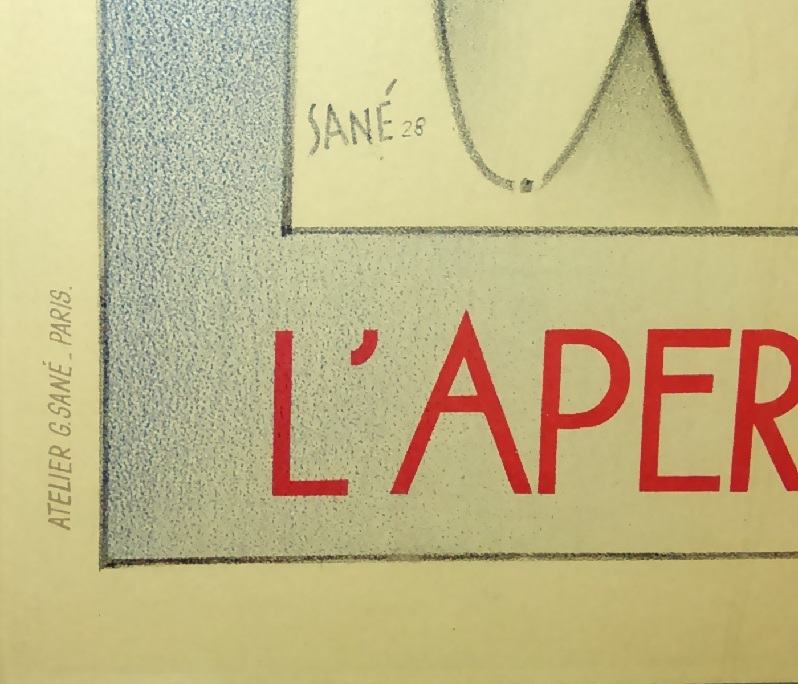 Purchased at a second hand / antique store, Treasures From The Attic  in Southampton, NJ, for $95.00. High Society has a clouded history. Although signed Sané 28 in the border, there is no evidence of it designed or produced in that year. It’s actual production date is circa mid 1950’s. A popular and stylish image, 1980 reproductions are printed on high gloss paper with the outside border removed. Or, reproduced with the border but with the signature removed. I thought my poster was an earlier, more valuable, version and was thrilled to have the expert agree. She estimated the value at $600.00-$700.00. It garnered a lot of attention and admiration from other attendees.