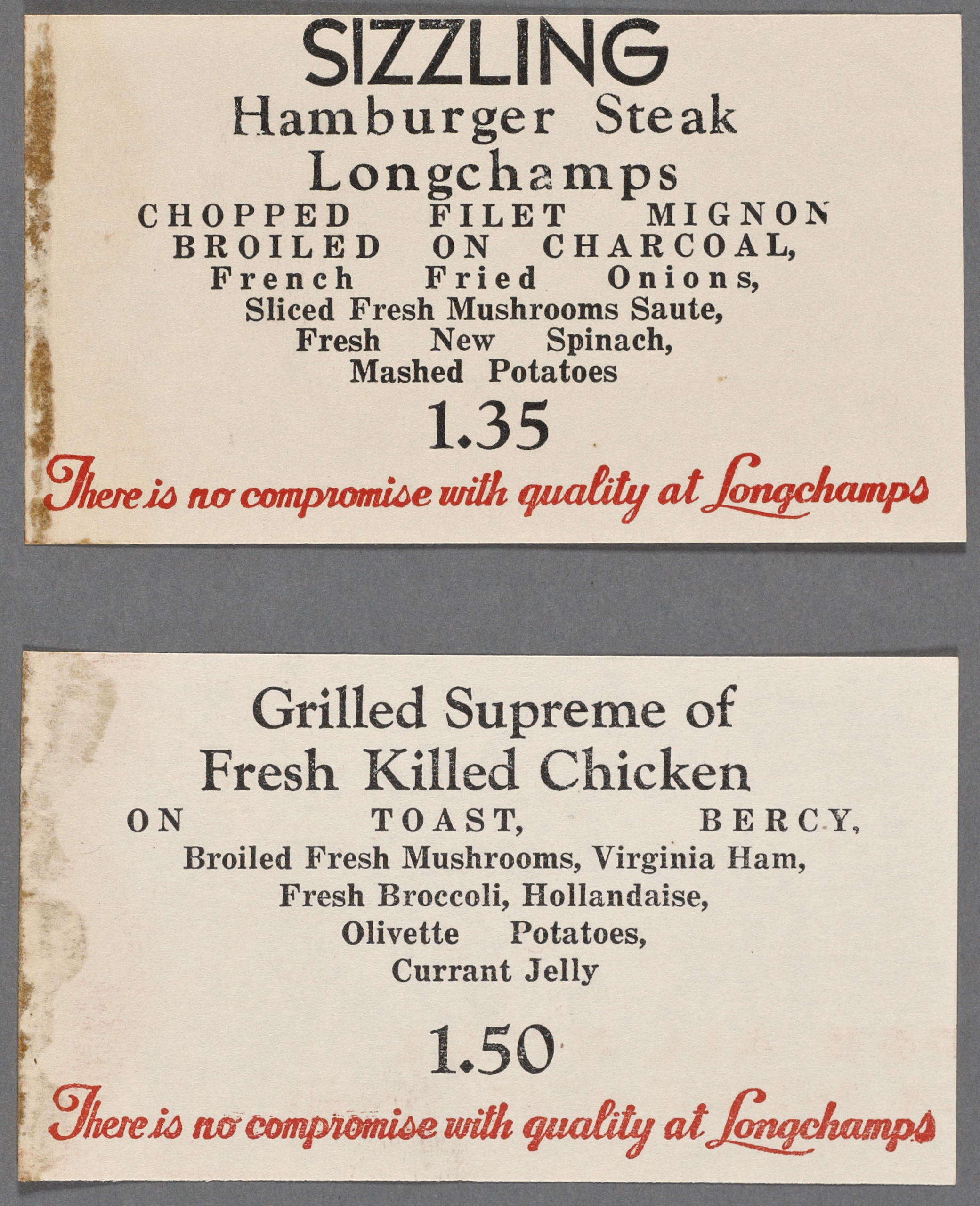 The only other item of note that Anthony picked up in the autumn was a circa 1940 Longchamps menu. He found it at the Antiques Mall of Madison, near Madison, Wisconsin, while visiting the state on a business trip.