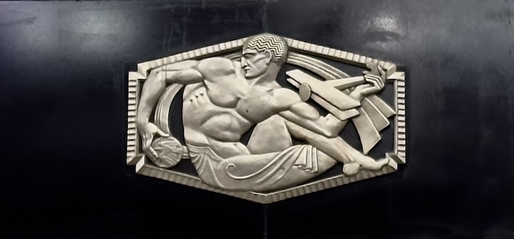 Art Deco restroom sign and frieze.