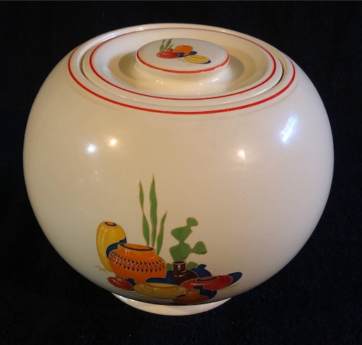 - Large Kitchen Kraft Oven Serve covered jar with the Mexicana decal. From the collection of Anthony L’Abbate.