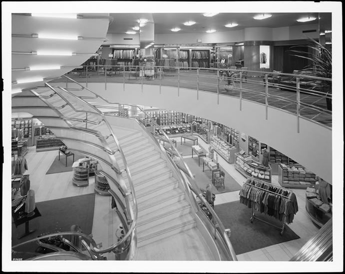 Bond Clothes, ground floor just inside the entrance on West 45th Street. Wurts Bros. photograph from the collection of the mcny.org.